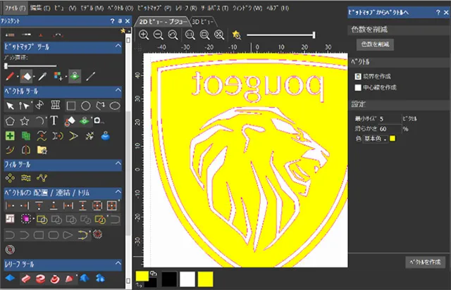 繰り返しになりますが、彫刻するにはベクトルがどうしても必要ですから色の境界から輪郭を自動で抽出させます。