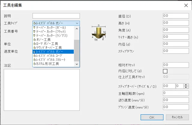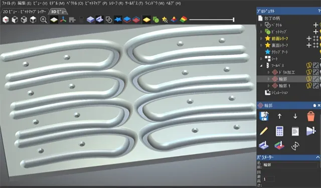 極楽彫premium10やArtEsperには様々なパターンの工具で手持ちのモノをあらかじめ必要なだけ登録しておく機能が有りますが、このパターンに収まらない形状の工具もカスタム形状工具として登録することが出来ます。