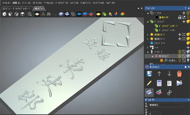 彫りたい銘の2D画像を用意します。あまりクリーンな画像より少し有れた画像の方が手彫り調の仕上がりに近づけることが出来ます。