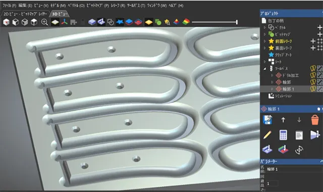 まずは柄の作成は成形ルータービットという刃を使った二次元加工で行います。
