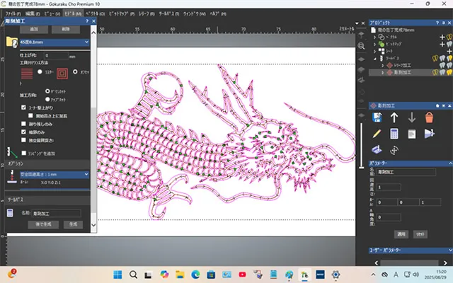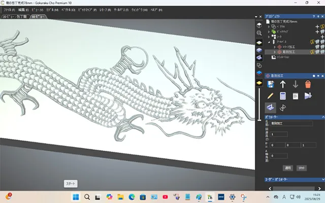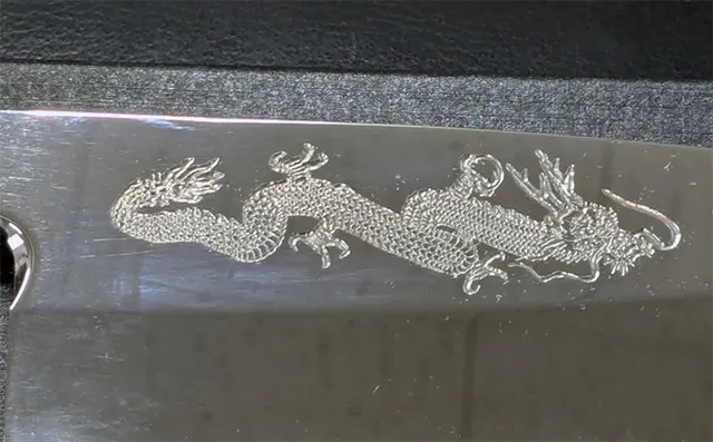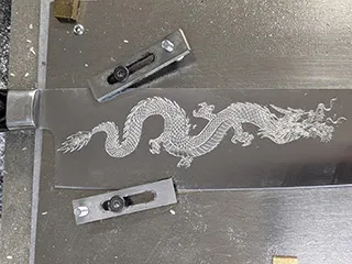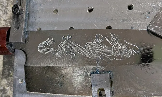 今回はさらにその延長上に有る専門的な加工で、インバウンド需要でも人気のある板前用の出刃包丁に龍の模様を3D彫刻するという事例をご紹介します。